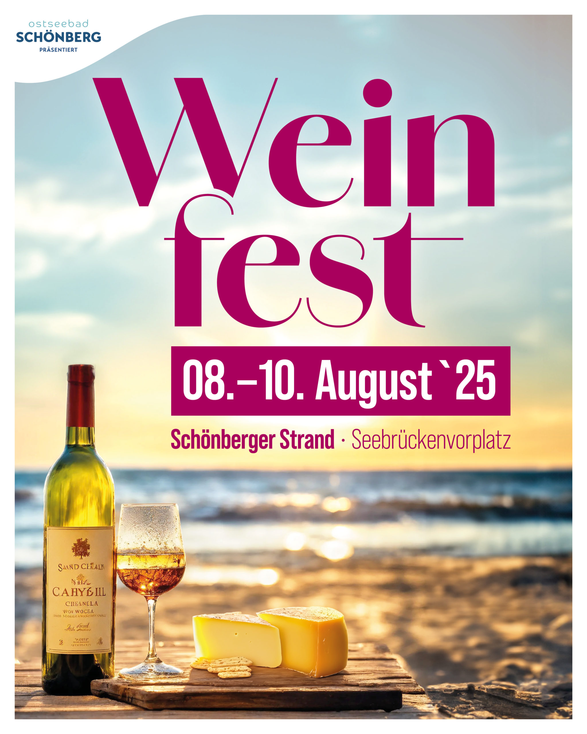 Weinfest vom 08. bis 10. August 2025 – Genuss mit Meeresbrise Vom 8. bis 10. August heißt es am Schönberger Strand: Anstoßen mit Ausblick! Beim ...